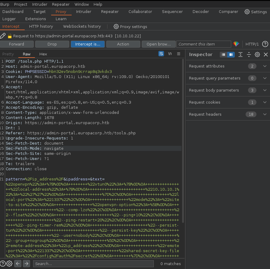 Now that we have access we need to pay attention on the tool, where we can have a VPN config generator, let’s take a closer look using Burpsuite: