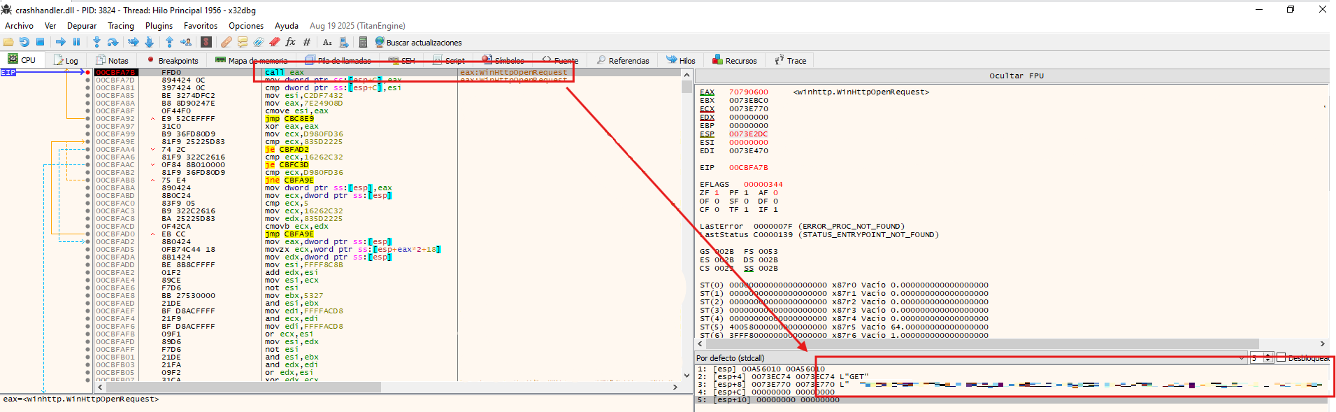 crashlog.datinto the previously allocated memory region. - NtProtectVirtualMemory Modifies the memory protection of the allocated region, transitioning it to executable in preparation for execution.