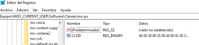 The malware also creates the registry key Software\Classes\ms-pu\CLSID. According to a WeLiveSecurity article, this key is used to store information about the compromised system — which aligns with the earlier observed behavior of the malware reading system performance metrics.